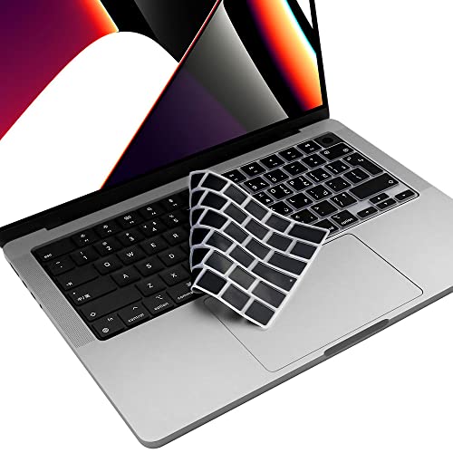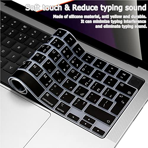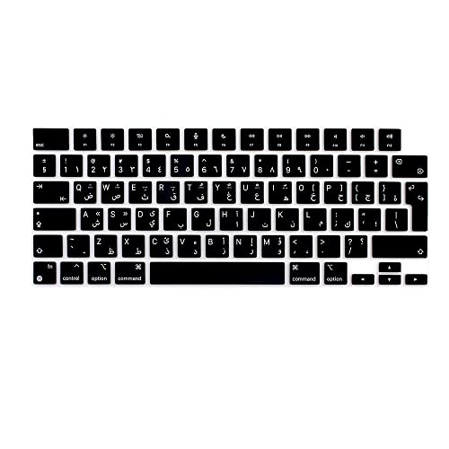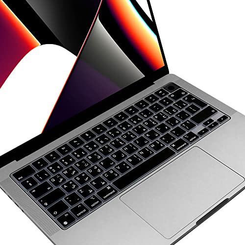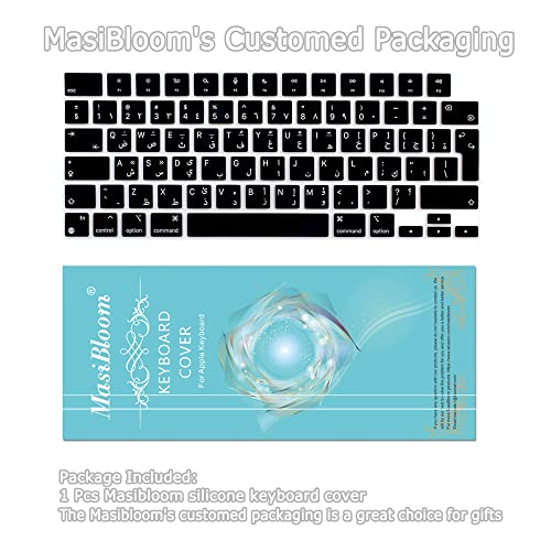 MasiBloom - ملصق حماية من السيليكون بخلفية حروف اوروبية وعربية لكيبورد ماك بوك برو 14.2 بوصة A2442 وماكس 16.2 بوصة A2485 M1 وبرو شيب اصدار 2021 بخاصية التعرف على الهوية باللمس من ماسي بلوم، (لغة عربية)