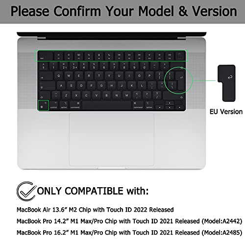 - متوافق فقط مع تصميم الاتحاد الأوروبي ماك بوك اير 13 انش M2 رقاقة مع خاصية التعرف باللمس موديل A2681--تم إصداره في يوليو. 2022 وماك بوك برو 14 انش موديل A2442 وشريحة A2485 M1 ماكس/برو 16 انش مع خاصية التعرف باللمس -- تم إصداره في أكتوبر 2021؛ لا يناسب ماك بوك برو 2022 13 انش رقاقة M2 وماك بوك برو 2020 13 انش ايه 2338 شريحة M1 A2289 A2251 وماك بوك برو 16 انش 2019 (الموديل: A2141) وغيرها من سلسلة ماك بوك برو/اير. يرجى التحقق من الطراز والتصميم الخاص بك لتجنب الشراء بشكل خاطئ