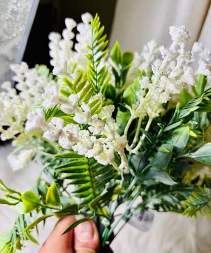 Generic - باقة اوكالبتوس الهجينة - زهور بيضاء وهمية مصنوعة من الحرير والبلاستيك لديكور المنزل الأنيق وترتيبات الزفاف والعروض الموسمية، نسيج نابض بالحياة (موديل 3)