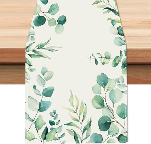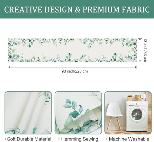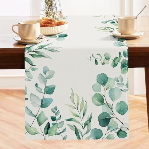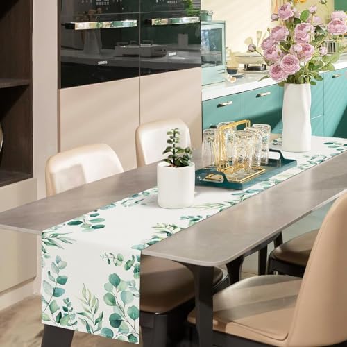 Generic - مفرش طاولة بتصميم أوراق الاوكالبتوس مقاس 33 × 2.2 م بتصميم أوراق خضراء ونباتات الربيع والعطلات الموسمية والمطبخ وتزيين طاولة الطعام - للاستخدام الداخلي والخارجي وديكور الحفلات المنزلية
