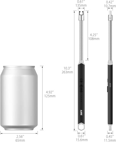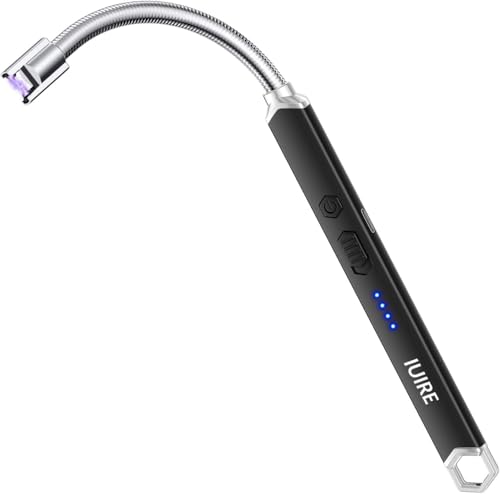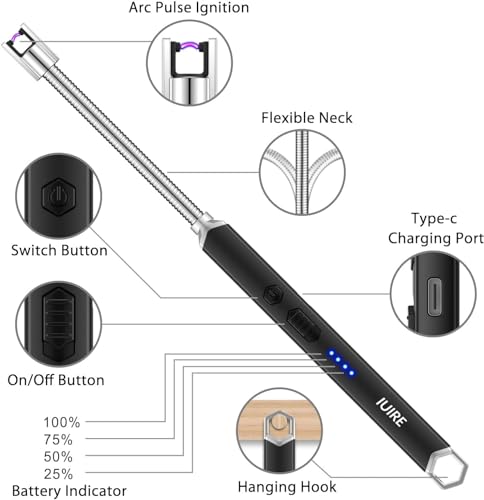 Generic - ولاعة شموع كهربائية قابلة لاعادة الشحن من اي يو اي ار اي ار مع شاشة LED للبطارية برقبة طويلة مرنة بمنفذ USB C (اسود)