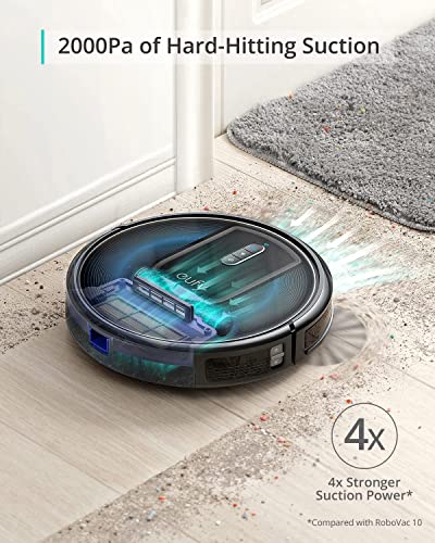eufy - مكنسة كهربائية روبوفاك G30 الية بخاصية ملاحة ديناميكية 2.0 سمارت وقاعدة لاصقة قوية 2000 باسكال من يوفي، روبوت تنظيف بواي فاي متوافق مع اليكسا لتنظيف السجاجيد والارضيات الصلبة ومالكي حيوانات اليفة