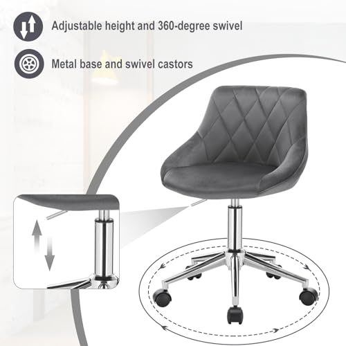 EUGAD - كرسي مكتب قطيفة دوار وقابل للتعديل بعجلات من يوجاد، 1 × 0031BGY، رمادي غامق