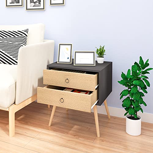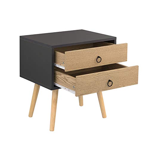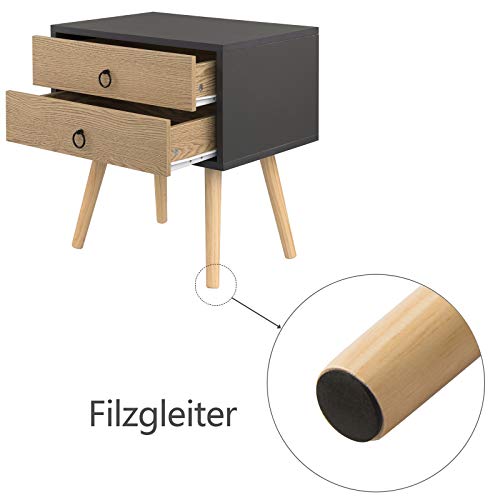 EUGAD - طاولة قهوة بجانب السرير من خشي ليفي متوسط الكثافة MDF بأرجل خشبية مع درجين يوجاد مقاس 46 × 35 50 سم لون رمادي موديل 0062ZZ-2