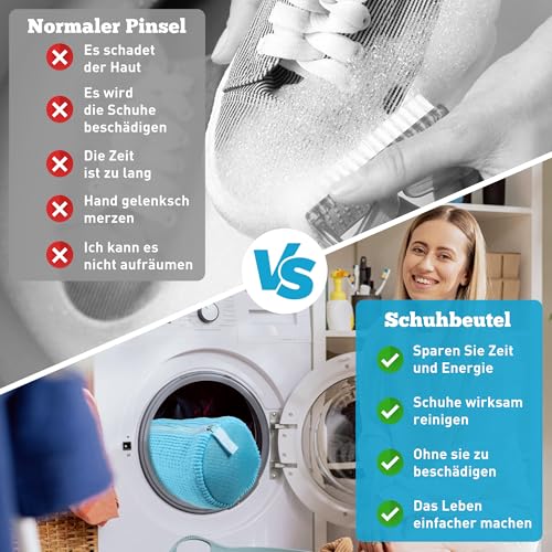 - تنظيف أحذية سهل: على عكس حقائب الغسيل الشبكية التقليدية في السوق، تتميز هذه الشنطة الناعمة وعالية النفاذية بقوة تنظيف أكبر. ببساطة ضَع حذاءك داخل شنطة الغسيل وضعها في الغسالة، ليبدو الحذاء وكأنه جديد.