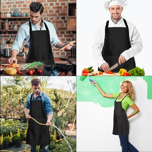 EUPSIIU - مريلة مطبخ من قطعتين من يوبسيو، مريلة قابلة للتعديل بجيبين، مريلة طبخ للجنسين للنساء والرجال للمطبخ المنزلي والمطعم والمقهى والخبز والبستنة والشواء والرسم، 60×70 سم (لون أسود)