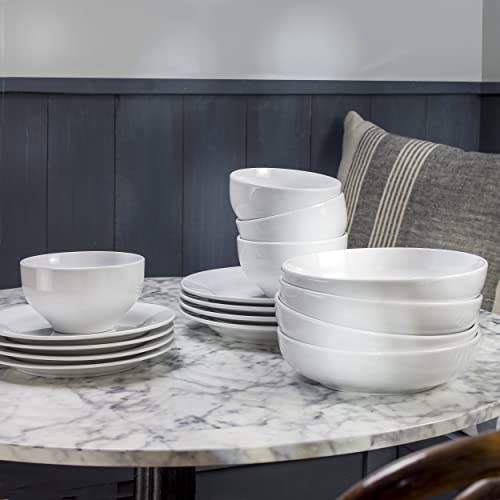 Euro Ceramica - طقم عشاء بورسلين بوعاء مزدوج مونت بلانك مع 4 بولة بمقاس 22 سم من يورو سيراميكا، لون أبيض ترو، طقم عشاء لعدد 4 أشخاص (16 قطعة)