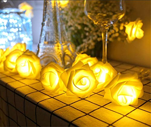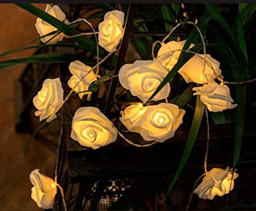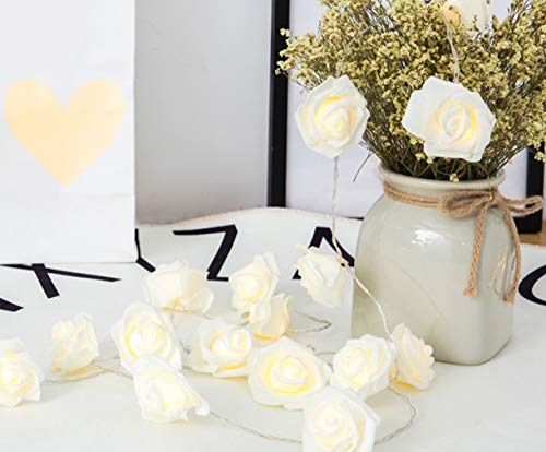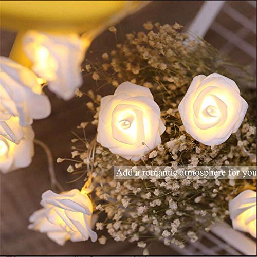 Eurobuy - مصابيح زينة عيد الحب من يوروباي، سلسلة على شكل وردة بطول 3 متر، 20 مصباح LED يعمل بالبطارية لغرفة نوم الأطفال والمرآة والجدران والنوافذ وحفلات الزفاف (البطاريات غير متضمنة) (أبيض)