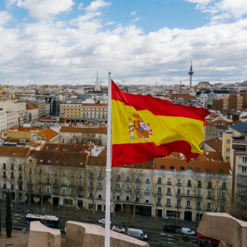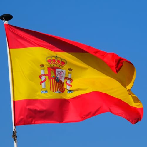 - ستحصل على علم إسبانيا مقاس 90 × 150 سم مع حلقة عمود (العمود غير متضمن)