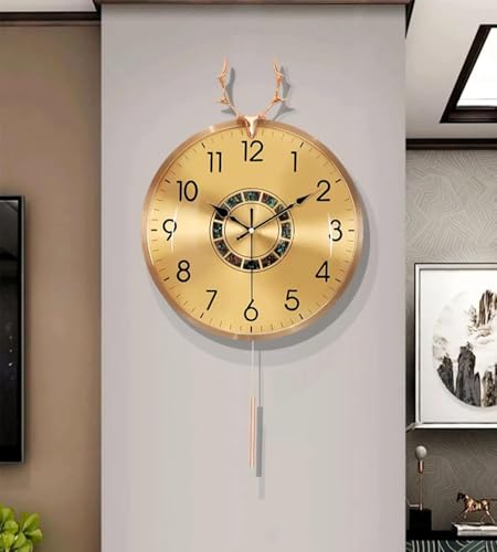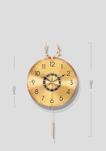 Generic - ساعة حائط لغرفة المعيشة على شكل قرن غزال تصميم أوروبي مع البندول، ذهبي