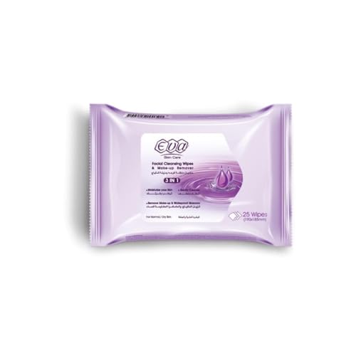 Eva - مناديل مبللة منظفة للوجه ومزيلة للمكياج والعناية للبشرة الجافة/العادية من ايفا