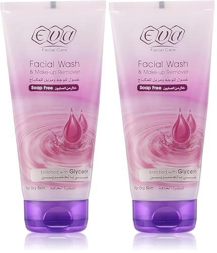 Eva - ايفا العناية بالبشرة - غسول الوجه ومزيل المكياج مع الجلسرين للبشرة الجافة، 150 مل (عبوة من قطعتين)