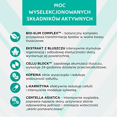 - تقليل السيلوليت وعلامات تمدد الجلد - تعمل مركبات ايزوسيل سليم وسنتيلا اسياتيكا والكافيين ومستخلص اللبلاب على تقوية الجلد وتعزز شد الجلد وإزالة القشور مع تنحيف قوام الجسم.