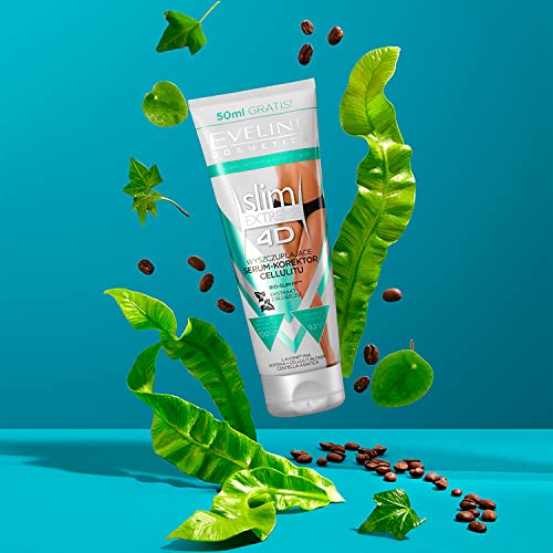 EVELINE COSMETICS - سيروم وكريم ساخن ومركز سليم اكستريم 4D للتخسيس والتخلص من السيلوليت وحرق الدهون بسرعة وتقليل علامات التمدد وتنحيف البطن والساقين والذراعين مع تاثير تبريد ايفلين كوزمتيكس، 250 مل، عاجي