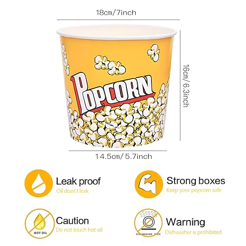 - تم تصميم العبوة لاستيعاب كميات كبيرة من الفشار، مما يجعلها مثالية للمناسبات والأماكن التي تتطلب خدمة العديد من الضيوف بكفاءة وفعالية.