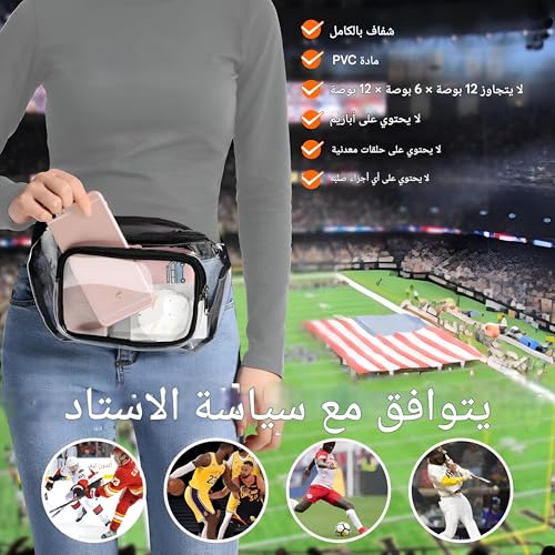 Generic - شنطة خصر فاني شفافة من مواد متينة مع مشابك قوية وحزام قابل للتعديل لتوفر الشفافية والراحة، مناسبة لدخول الاستاد وتأمين الحفلات الموسيقية والتجمعات الرياضات اليومية