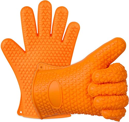 generic - قفازات شواء من السيليكون مقاومة للحرارة ومقاومة للماء ومضادة للانزلاق من ايفرديجي، مناسبة للشواء والطبخ والخبز والقلي، مجموعة من قطعتين - برتقالي 9989217