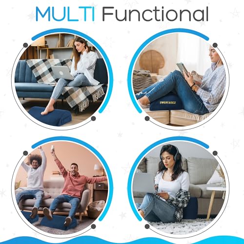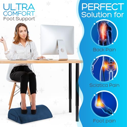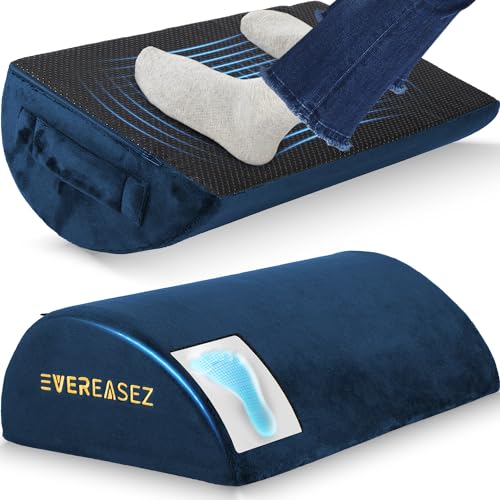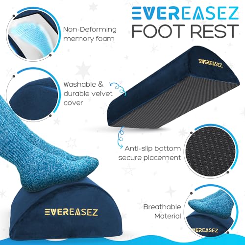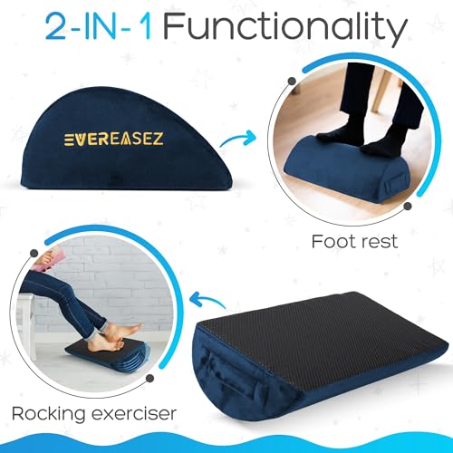 EVEREASEZ - مسند قدم أسفل المكتب 2 في 1 من الميموري فوم مع غطاء قطيفة قابل للغسل مريح لألعاب الكمبيوتر واكسسوارات المكتب من ايفر اياسيز، أزرق كحلي