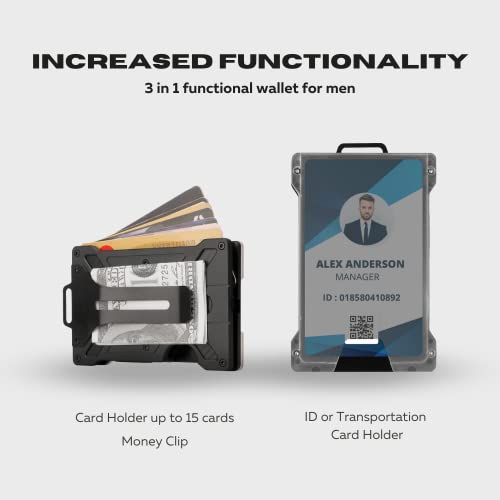 EverGoldGoods - محفظة بسيطة للرجال من ايفر جولد جودز - مشبك نقود معدني رفيع الالومنيوم حامل بطاقات الائتمان مع شفاف لبطاقة الهوية بتقنية تحديد بموجات الراديو تحمل ما يصل الى 15 بطاقة اسود