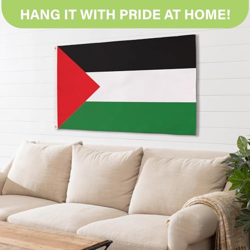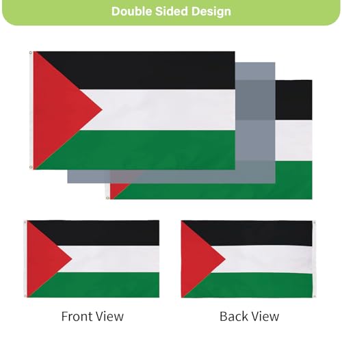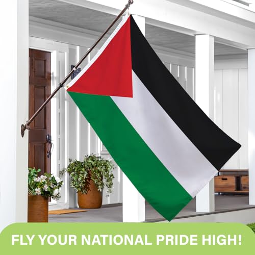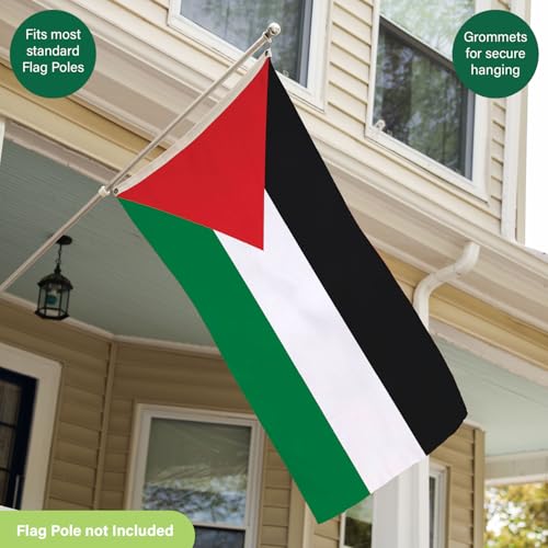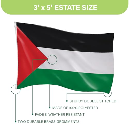 Evergreen Flag - علم فلسطين من ايفرجرين 3×5 للاستخدام الخارجي مزدوج الجوانب، اعلام الوطن للخارج مع حلقات تثبيت، لافتات علم فلسطين من 3 طبقات للحديقة والفناء، ديكور حائط داخلي للغرفة، يعمل مع العقارات القياسية