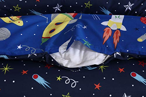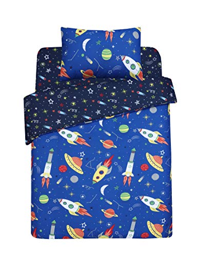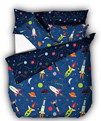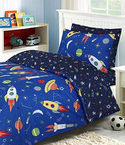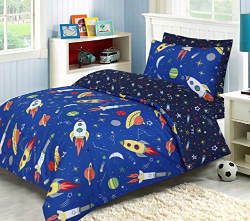 Every Thread Counts - طقم سرير كامل للاطفال من ايفري ثريد كاونتس - غطاء لحاف وملاءة مثبتة - قطن 100% - انماط جذابة ازرق فضائي مزدوج سادة