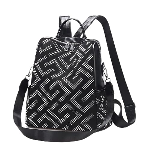 Generic - شنطة ظهر للاستخدام اليومي - شنطة نسائية بنمط هندسي أنيق بلون أسود، حزام كتف قابل للتحويل، إغلاق بسوستة، أحزمة مبطنة قابلة للتعديل، جيوب داخلية واسعة للاستخدام اليومي