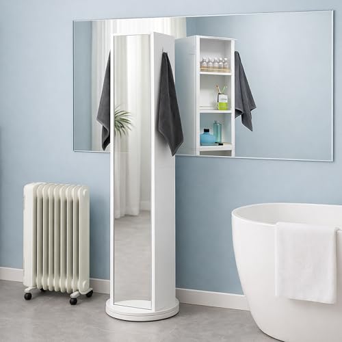 EVIDECO - منظم خزانة دوار أبيض مع مرآة لتخزين البياضات ومستلزمات الحمام - للمساحات الصغيرة - بأبعاد 1.7 متر ارتفاع × 30 سم طول × 36 سم قطر القاعدة من EVIDECO - لغرف النوم والحمامات