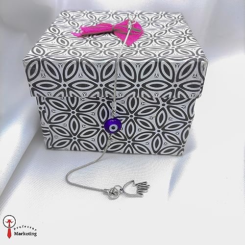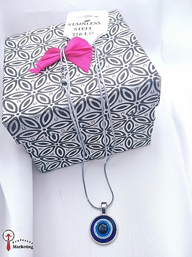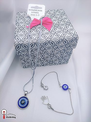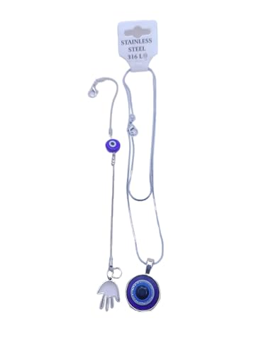 Generic - طقم سوار بخرزة الزرقاء عين الحسد- انسيال و سلسلة طويلة فضى فولاذ مطلي بلاتينيوم مقاوم للصدأ للرجال والنساء فضي
