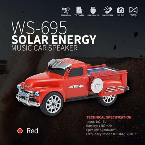 Evo - مكبر صوت WS-695 بلوتوث محمول بتصميم سيارة عتيق مع إضاءة ليد بالفضاء اللوني ار جي بي من ايفو، أحمر