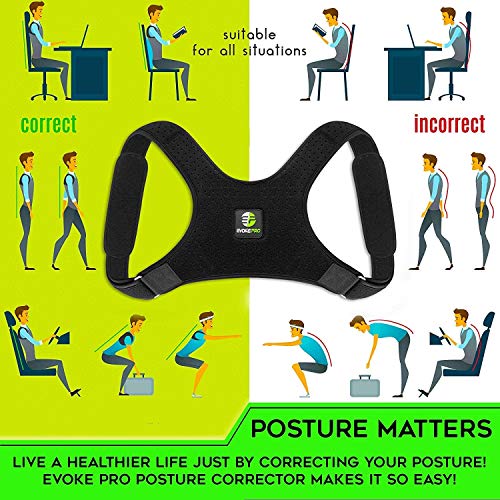 Evoke Pro - دعامة للكتف لتصحيح وضعية الجزء العلوي من الظهر وتقويته مع حزام لتمارين المقاومة للرجال والنساء (مقاس عادي)