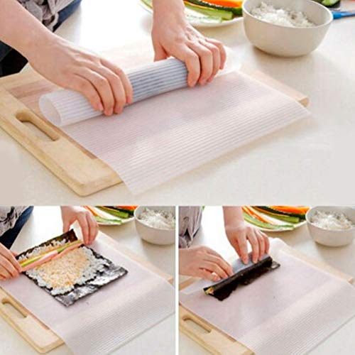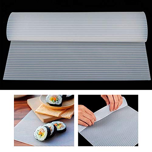 EVTSCAN - وسادة لف سوشي من السيليكون، صانعة سوشي قابلة لإعادة الاستخدام، لفائف العمل الكيك، الأومليت، غير لاصقة، بنمط مخطط، 35 × 30 سم من اي في تي سكان