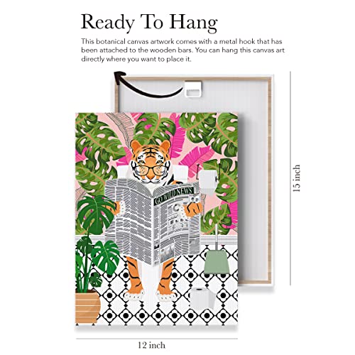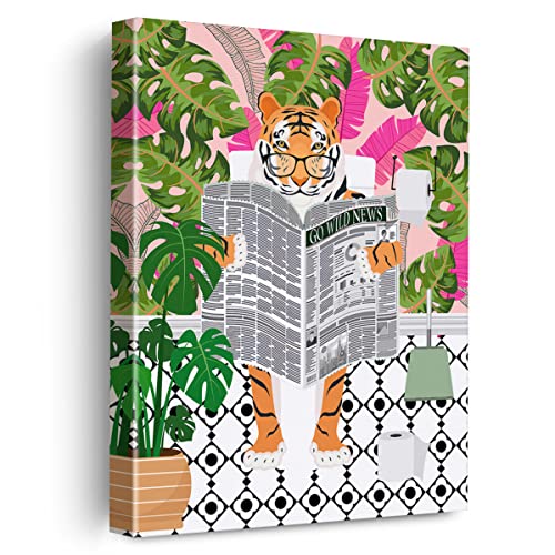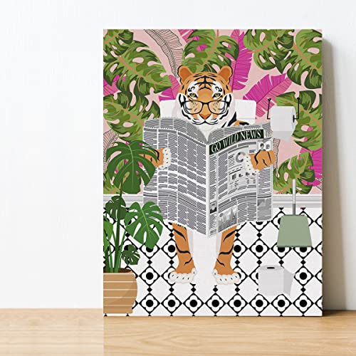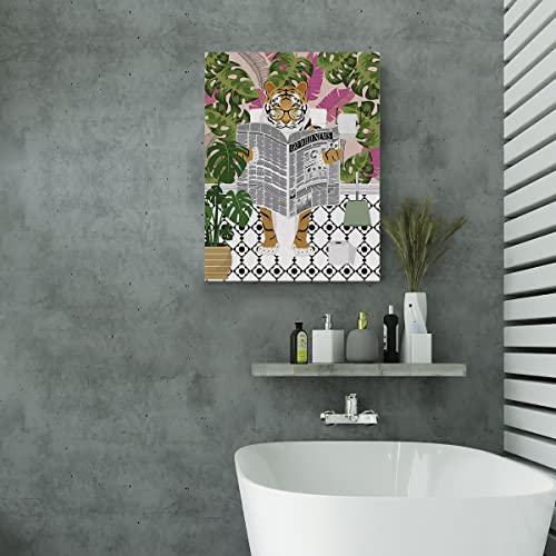 EVXID - بوستر لوحة فنية مطبوعة للحائط من القماش بطبعة نمر على التواليت جاهزة للتعليق لتزيين حائط الحمام من ايفكسيد، مقاس 30 × 38 سم