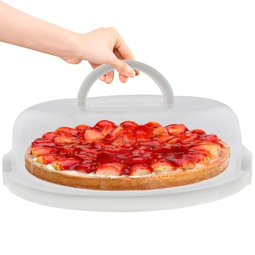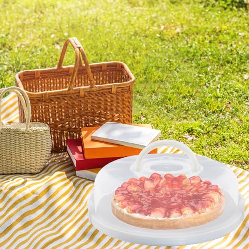 EWAFILU - حاوية فطائر بلاستيكية مع غطاء ومقابض قابلة للطي من ايوافيلو، حاوية دائرية للكب كيك والمافن والكوكيز، حاويات تخزين الطعام (ابيض)