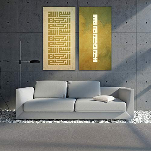 Ewan - لوحات جدارية اسلامية من ايوان، مطبوعة على قماش كانفاس بإطار خشبي مخفي، طقم 2 قطع مقاس كلي 120*120