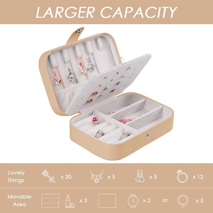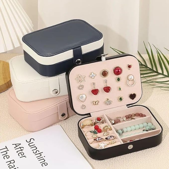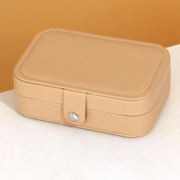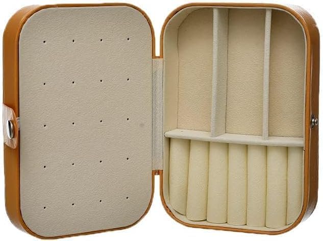 Generic - صندوق تنظيم المجوهرات من الجلد الصناعي بتصميم شنطة سفر من طبقتين للخواتم والحلقان والسلاسل والأساور مناسب للسفر والتخزين للبنات والنساء، بنى