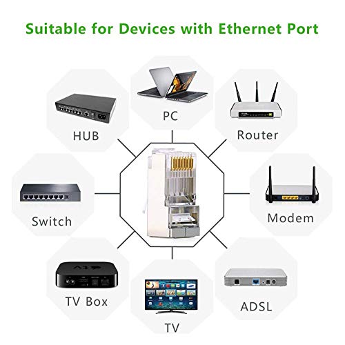 Ewigkeit - ايفيجيت 10 عبوات من موصلات ار جيه 45 كات 6 موصل مجعد Cat5E Cat5 Cat5 قابس كيبل شبكة ايثرنت معياري كريستال 8P8C لحاسوب محمول