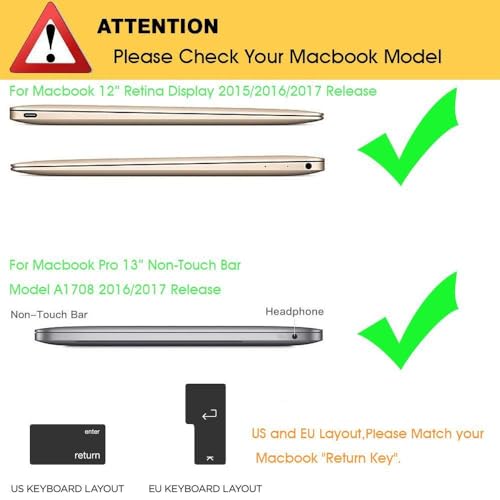 - 💻【لغة عربية بتصميم الولايات المتحدة الأمريكية】تصميم متوافق مع ماك بوك نيو برو 13 بوصة (A1708 A1988 بدون شريط لمس، إصدار 2018 و2017 و2016)، متوافق أيضًا مع ماك بوك 12 بوصة بشاشة ريتينا A1534 (إصدار 2015) وA1931 (إصدار 2018). (تصميم إصدار الولايات المتحدة الأمريكية فقط)