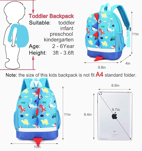 eWINNER - اي وينر شنطة ظهر مدرسية للاطفال الصغار بتصميم ديناصور لرياض الاطفال - ازرق