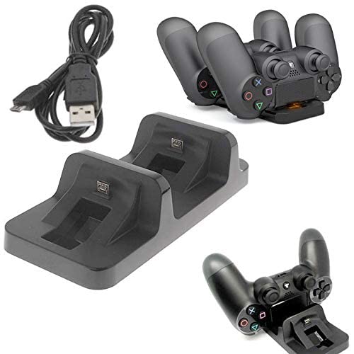 eWINNER - اي وينر وحدة تحكم بلاي ستيشن 4 - شاحن قاعدة شحن سريع بمنفذ USB مزدوج، رمادي