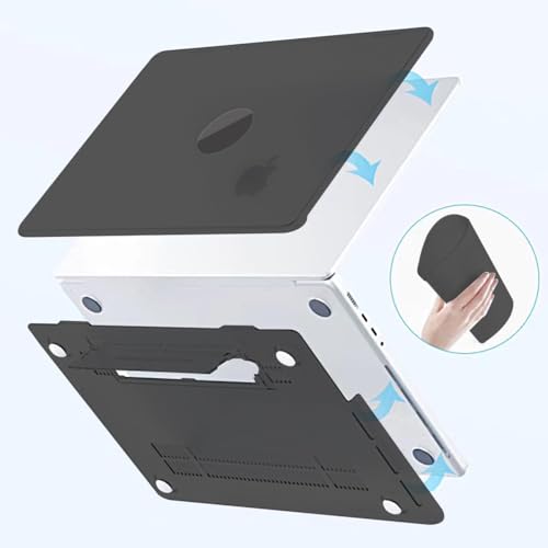 eWINNER - جراب حماية صلب سهل التركيب مع مسند قابل للطي متوافق مع لاب توب ماك بوك برو اير، اكسسوارات لاب توب (أسود، 13.3 اير (A2337 A2179 A1932)) من اي وينر