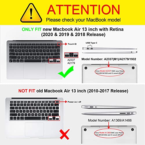 - 💻متوافقة مع أجهزة ماك بوك اير مقاس 13 بوصة موديلات 2018-2021، M1: تم تصميم حافظة اللاب توب الصلبة خصيصًا لجهاز ماك بوك اير 2018-2021 مقاس 13 بوصة، M1 (الموديل: A1932/ A2179/ A2337). تحذير: هذه الحافظة غير متوافقة مع موديلات أجهزة اللاب توب الأخرى. يرجى التحقق من موديل ماك بوك الموجود على الظهر قبل الشراء.