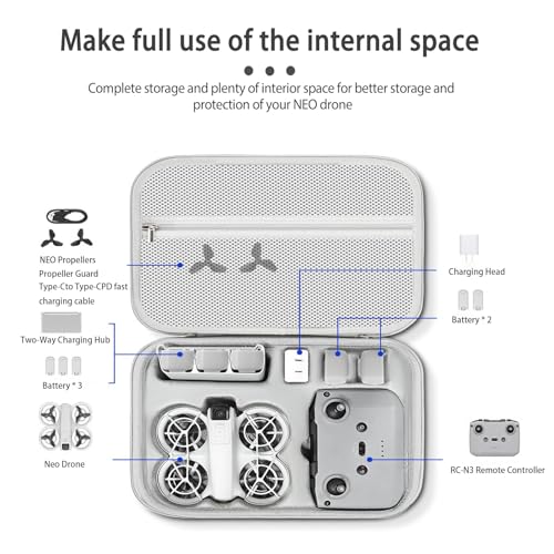 eWINNER - اي وينر حقيبة حمل متعددة الوظائف لدي جيه اي نيو / حقيبة واقية محمولة من البولي يوريثان لتخزين ملحقات دي جيه اي نيو فلاي مور كومبو / تحمل جهاز التحكم عن بعد RC-N3 / بطارية الطيران الذكية وملحقاتها