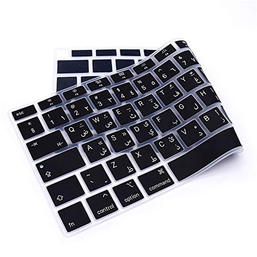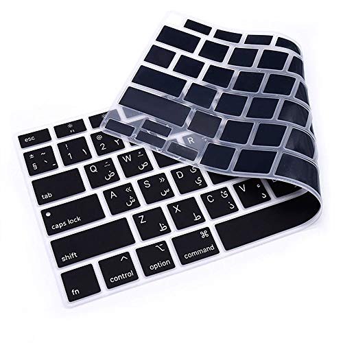 eWINNER - اي وينر غطاء كيبورد عربي من السيليكون لجهاز ماك بوك اير 13 بوصة (اصدار 2020، معرف شريط اللمس) A2179 US - حروف عربية، لون اسود، لأجهزة اللاب توب