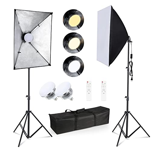 eWINNER - مجموعة إضاءة التصوير المستمر من سوفت بوكس مع صندوق ناعم 51×71 سم 150 واط 2700-6400 كلفن مصباح LED E27 بطول 2 متر مع شنطة حمل من اي وينر