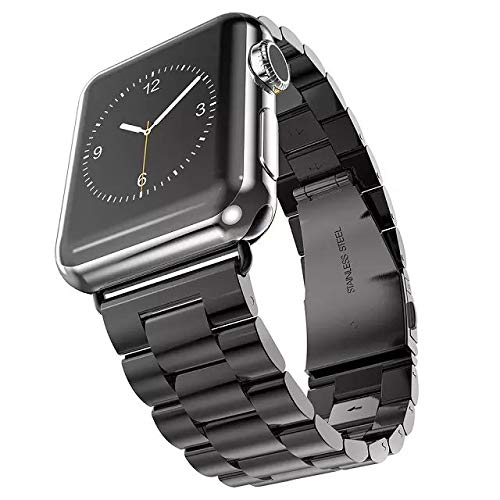 eWINNER - سوار ساعة بديل بمشبك من الستانلس ستيل مع محولات اكسل متوافق مع ساعة ابل سلسلة 7/6/5/4/3/2/1 SE مقاس 38 ملم 40 ملم 41 ملم للرجال والنساء من اي وينر/ لون أسود