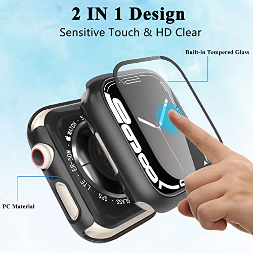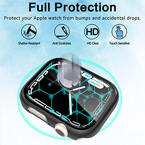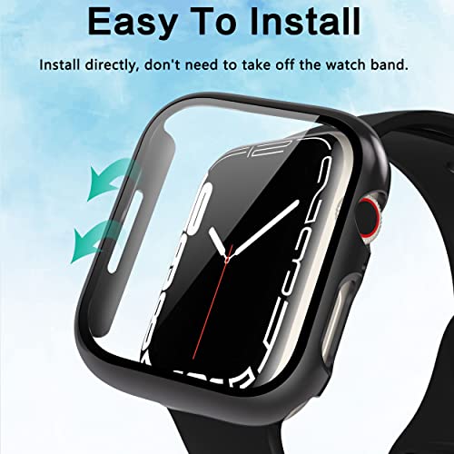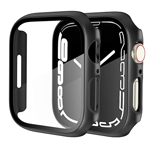 EWUONU - جراب ساعة آبل ممتص للصدمات بتغطية كاملة من البولي كربونات الصلبة مع شاشة حماية من الزجاج المقوى لساعة ابل سيريس 7 وسيريس 8 مقاس 45 ملم من ايونو، قطعتان، لون أسود