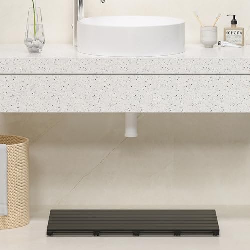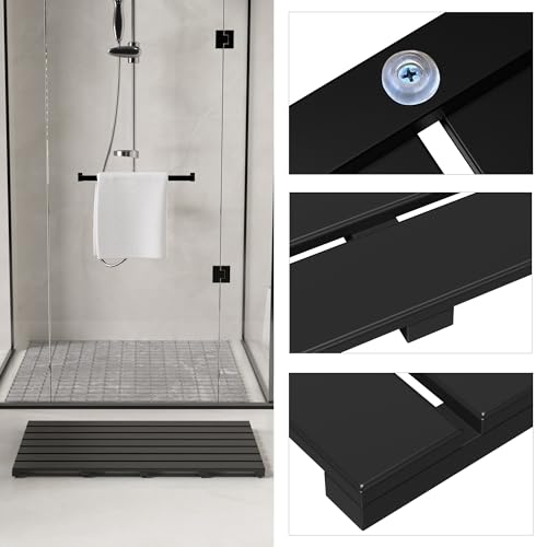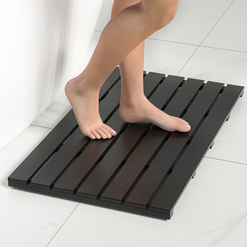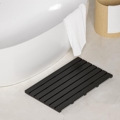 Exabang - سجادة حمام من الخيزران غير قابلة للانزلاق من اكسابانج، سجادة حمام، سجادة حمام، سجادة حمام، سجادة دش للاستحمام وحوض الاستحمام والمرحاض (80 × 18.6 × 3.3 سم، اسود)