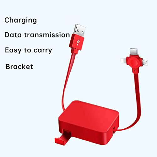 Excefore - كابل شحن سريع USB متعدد الوظائف 3 في 1 - محول قابل للسحب مع USB نوع C وMicro USB ومنفذ آيفون ونقل بيانات وحامل موبايل من اكسيفور، 1 م، أحمر