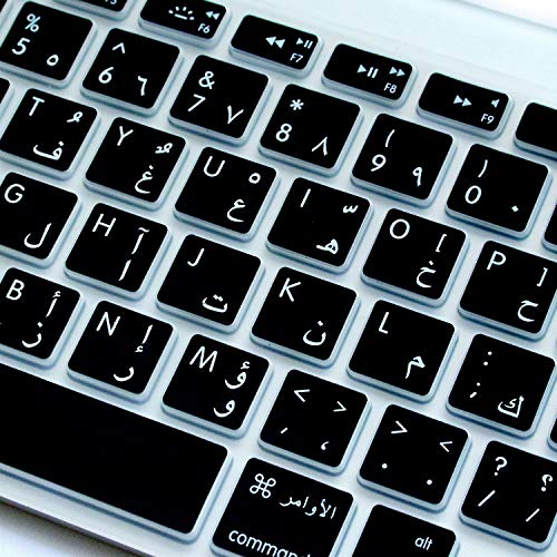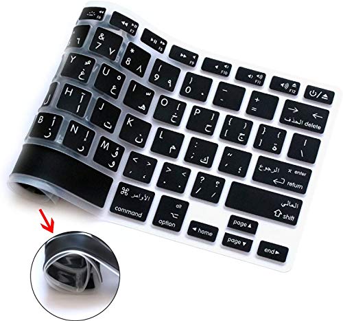 Excefore - ملصق حماية رفيع للغاية من السيليكون بخلفية حروف عربية لكيبورد ماك بوك اير وماك بوك برو بشاشة/بدون شاشة عرض ريتينا 13/15/17 بوصة MC184LL/B (اصدار 2015 او الاصدارات القديمة) من اكسفور، اسود