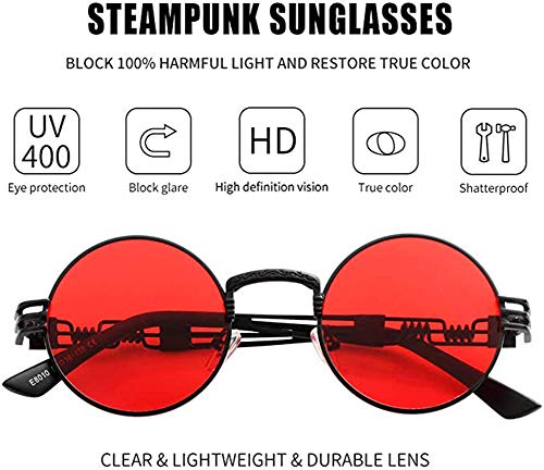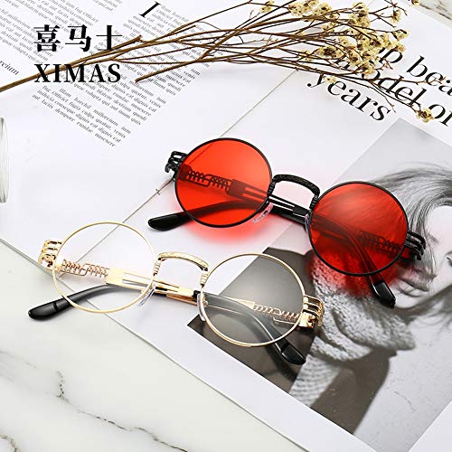 Excefore - نظارة شمس ستيم بانك دائرية بشنبر معدني جون لينون هيبي كلاسيكي بمشبك وعدسات عاكسة دولجر للرجال والنساء من اكسيفور، متعدد الالوان